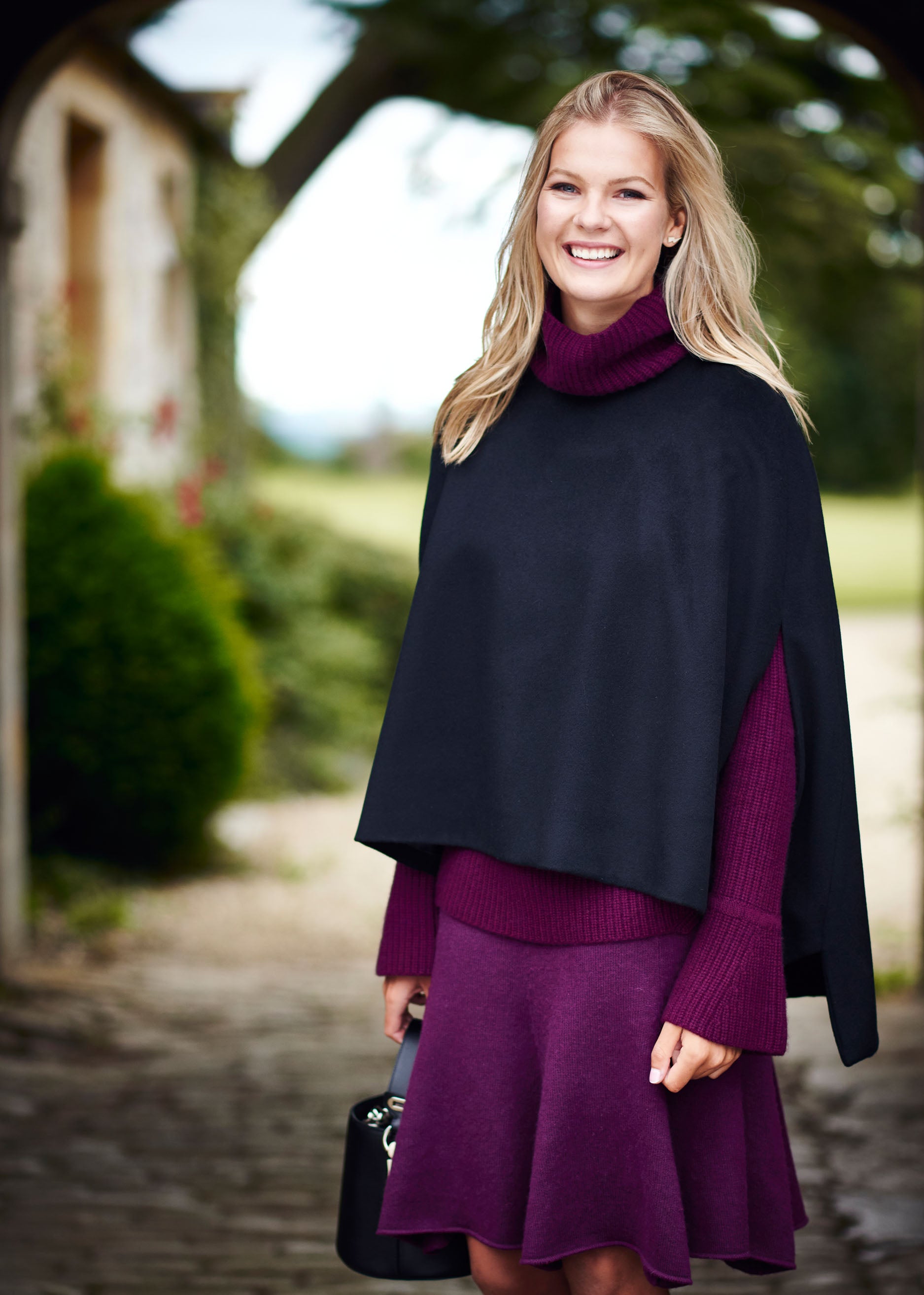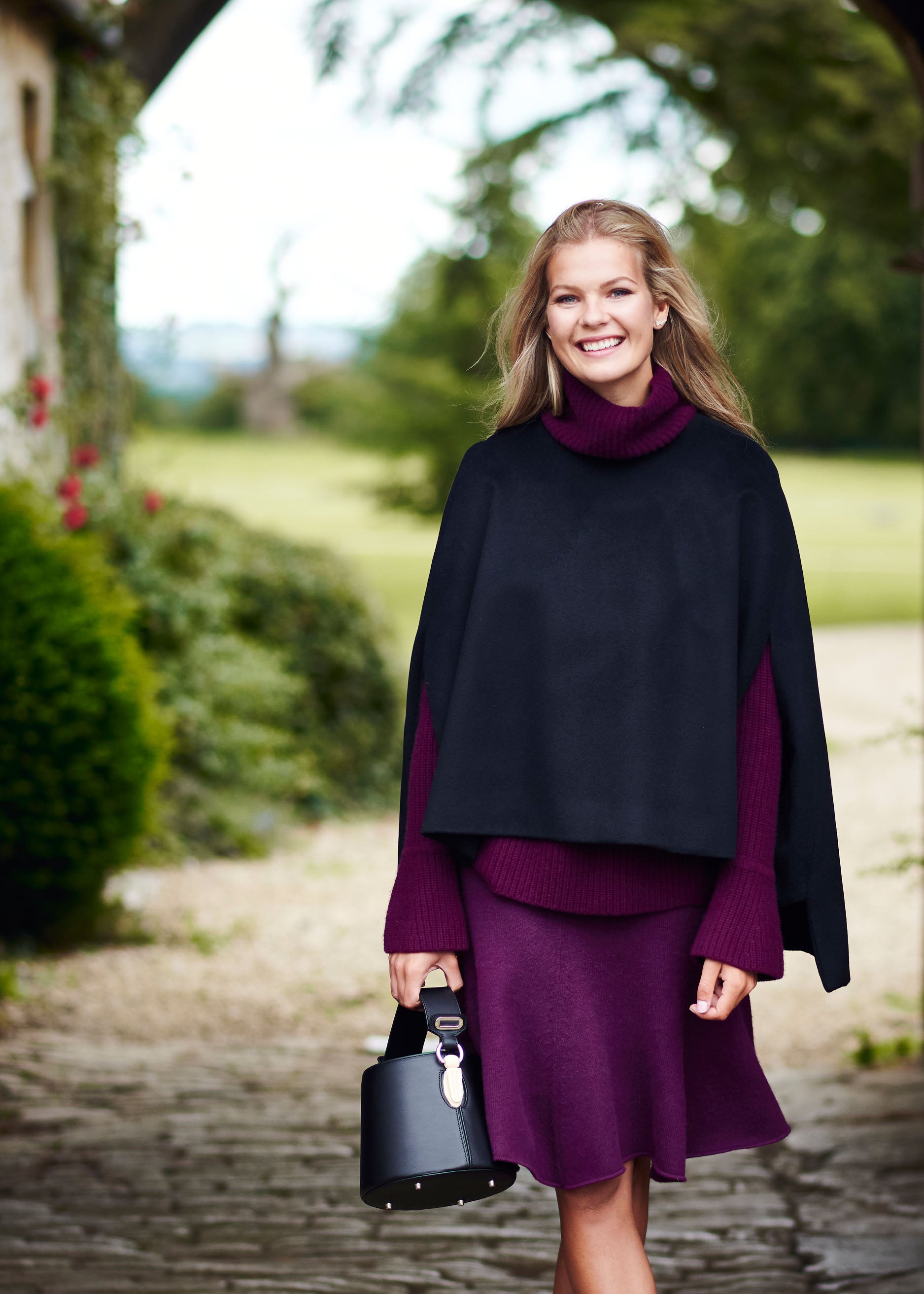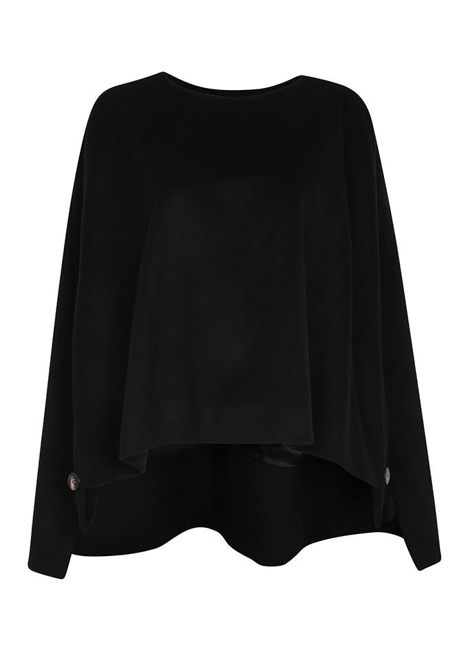 Black 100% woven, top quality, cashmere, crew-neck cape, lined and tailor-made in London.