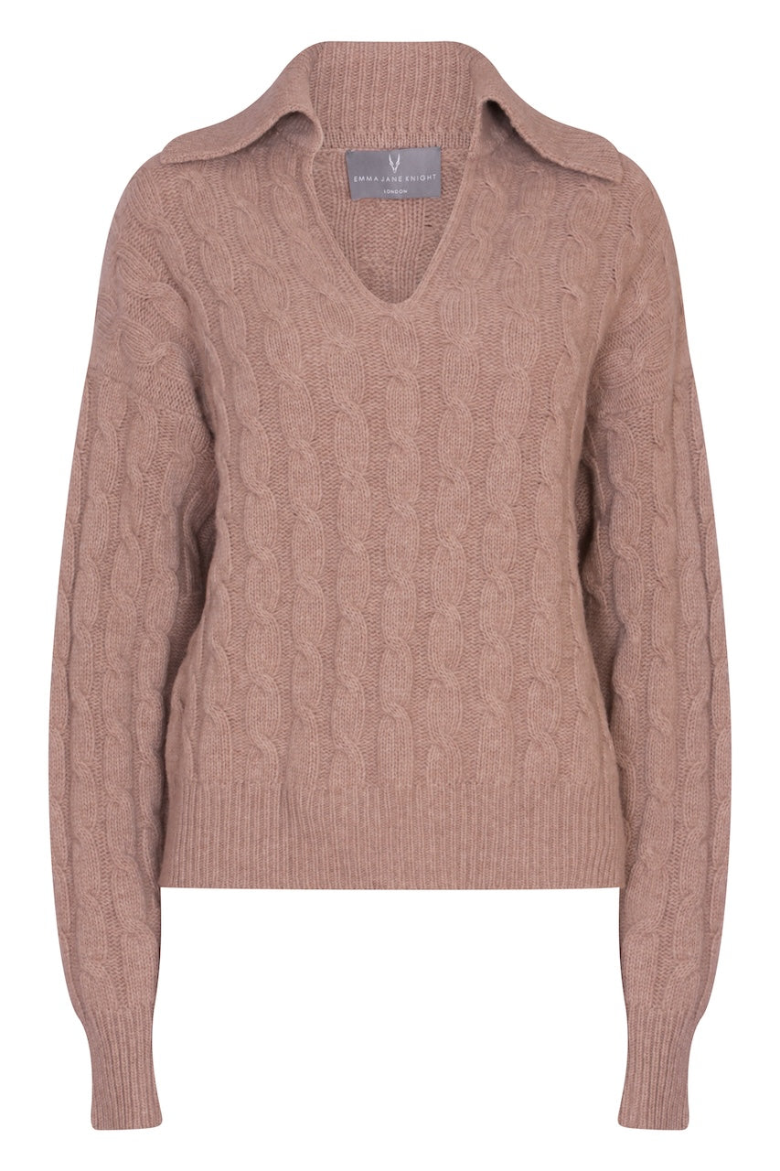 Limited Edition, thick, cable knit, V neck with raised collar.