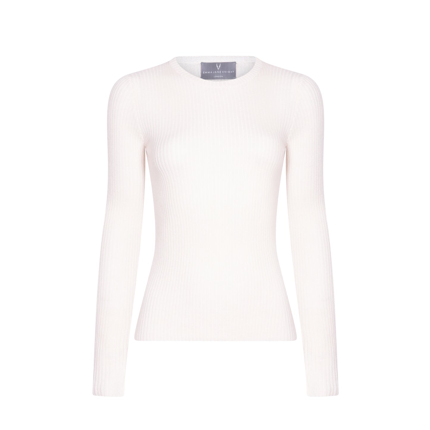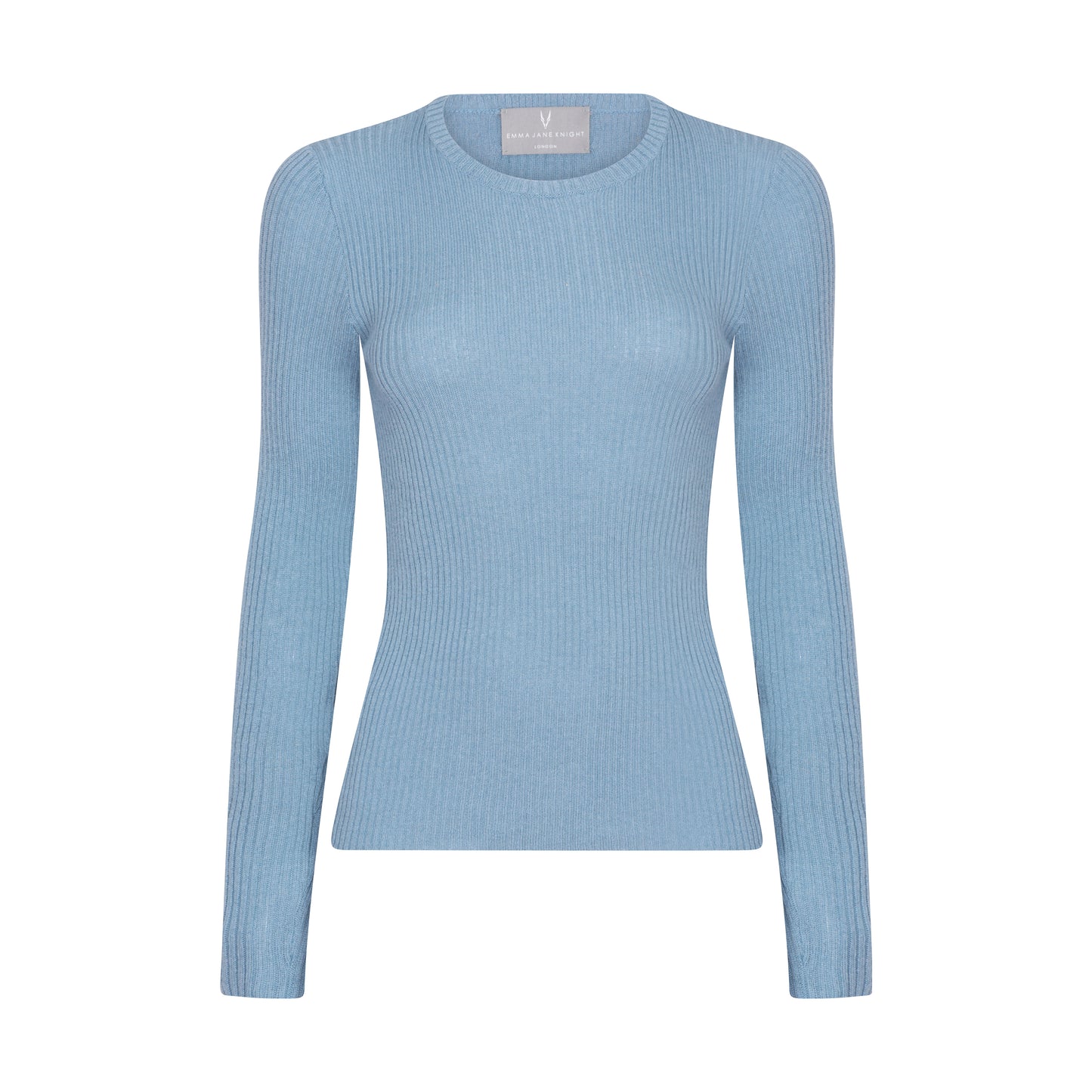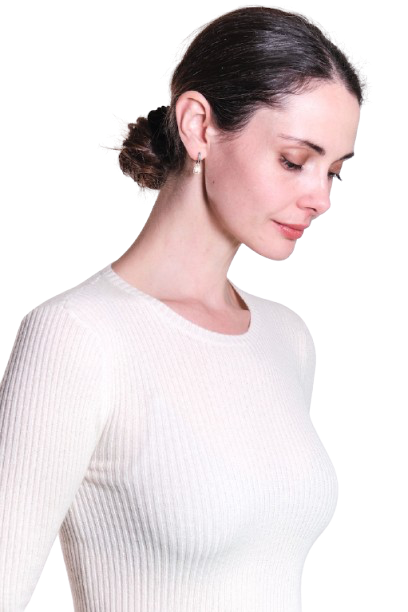 Cashmere, rib, crew-neck, fitted sweater made using top quality, pure cashmere yarn from Scotland.