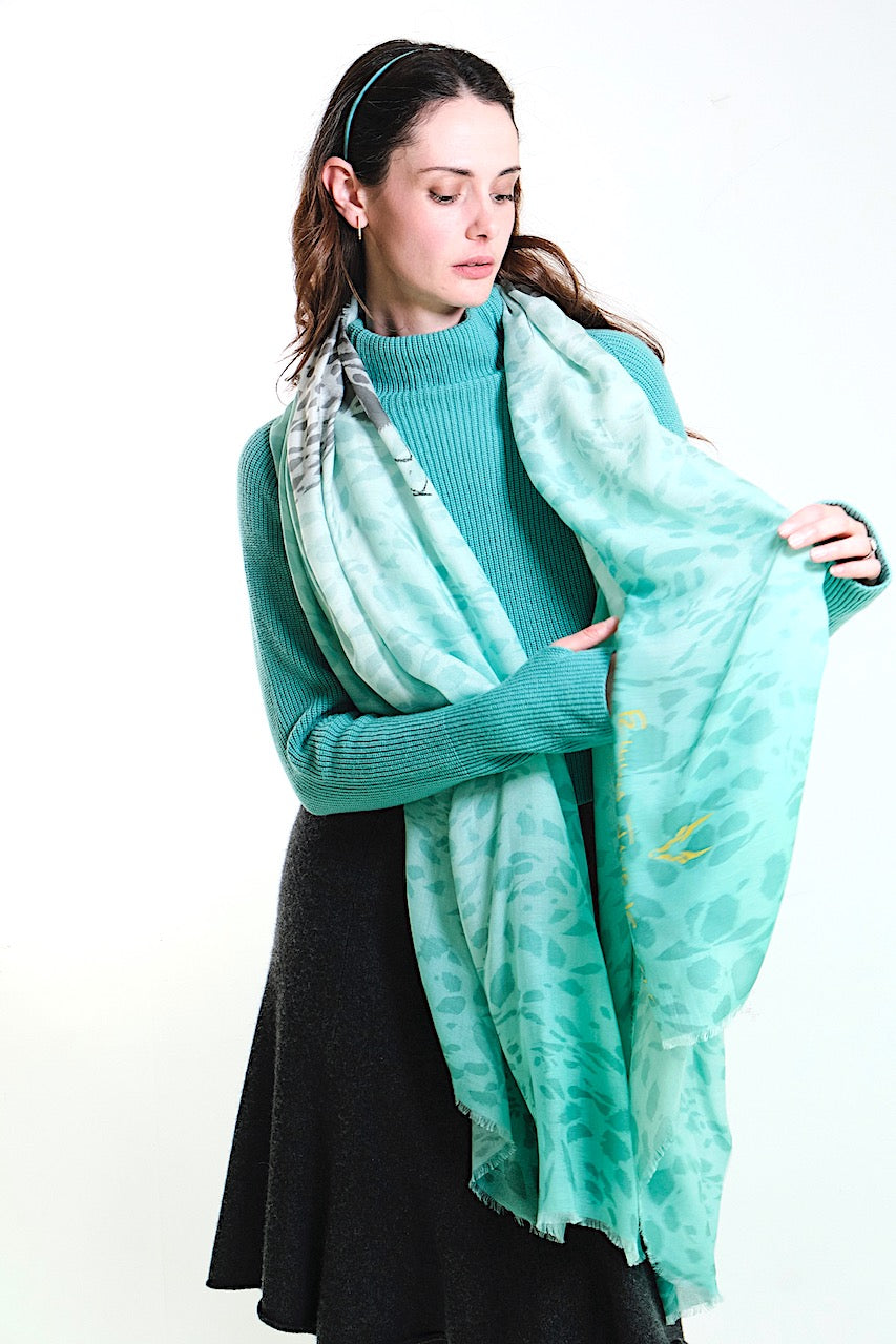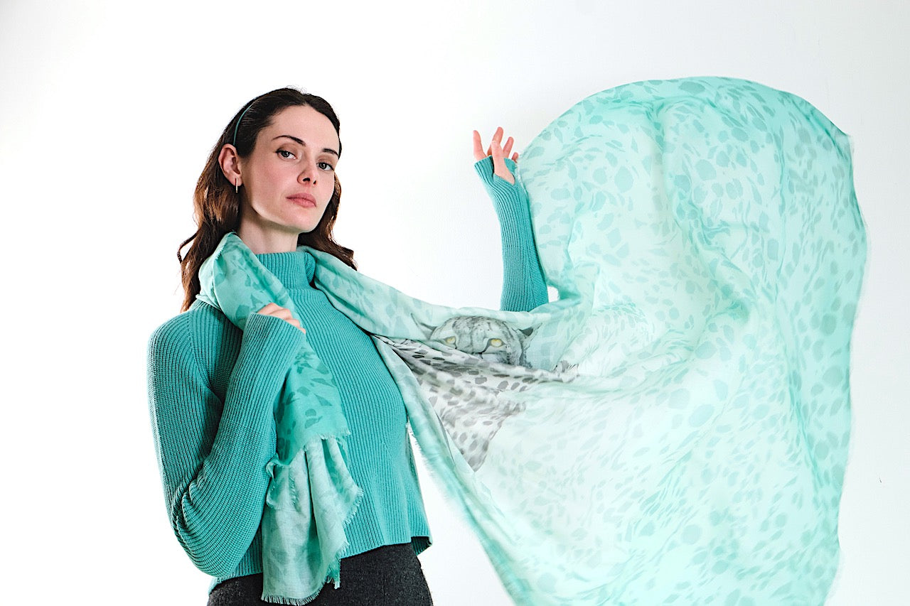 I was delighted to partner with the talented wildlife artist, Rose Corcoran, to digitally print her exquisite drawings of endangered wild cats on to the softest, LENZING GROUP TENCEL™ modal/cashmere fabric, to create stunning Scarf-Sarongs. Modal is a man-made, fibre sustainably sourced from natural materials.