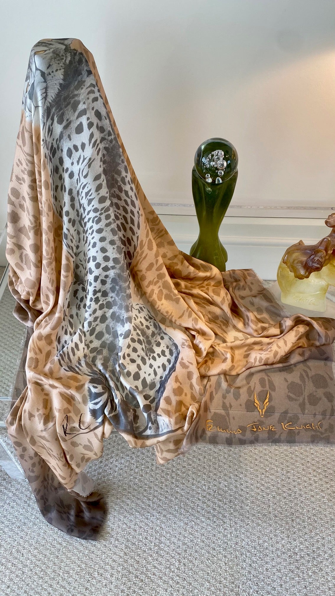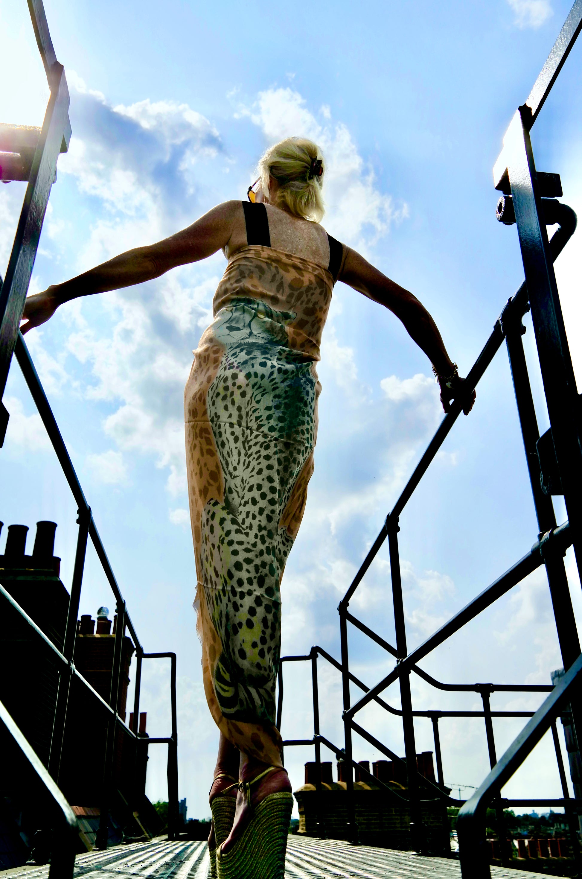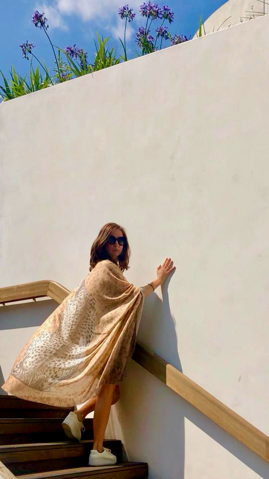 The 'Cheetah Back' scarf-sarong was inspired by wildlife artist, Rose Corcoran's, trip to the Maasai mara. Cheetahs are officially registered as vulnerable on the IUCN list (International Union for Conservation of Nature).
